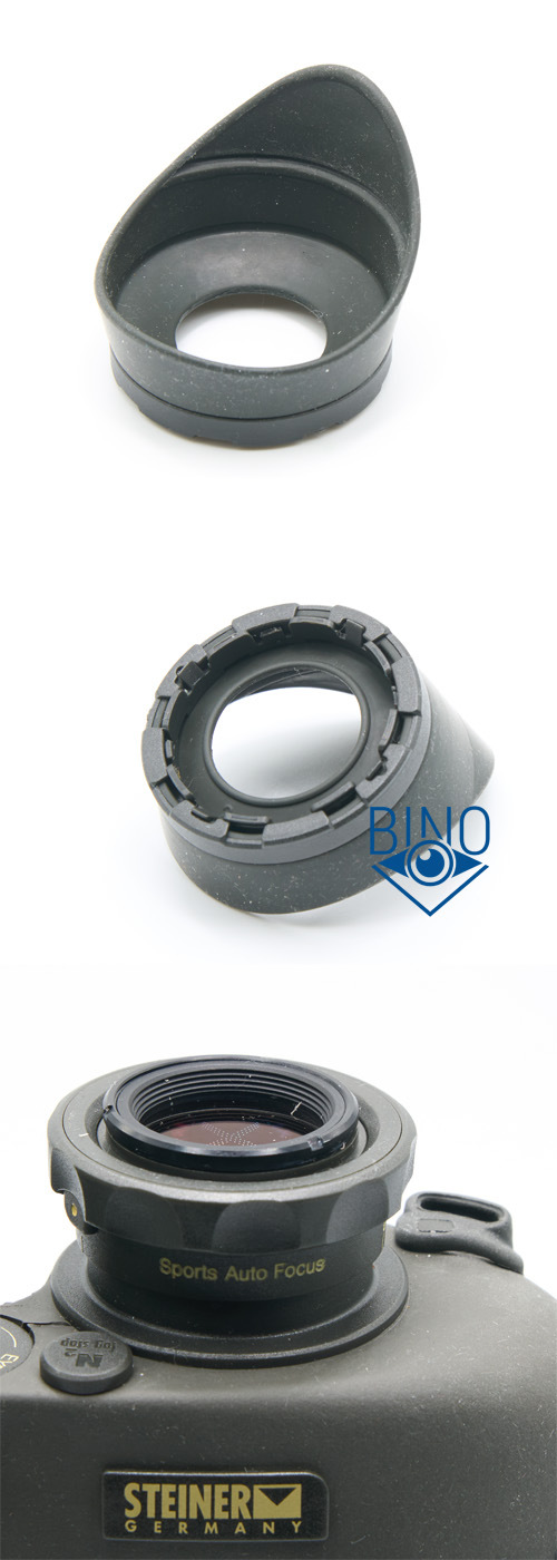 Так как фокусировка осуществляется вращением окуляров, то боковые козырьки могут попадать в любое, не боковое положение. Для этого наглазники сделаны вращающимися и съёмными. В их основание вставляется пластиковое кольцо, которое потом защёлкивается в крепление вокруг глазной линзы. Именно на этом кольце наглазник и вращается. В полном наборе с биноклем есть специальный инструмент в виде подковы для снятия наглазников. Я же снимал их с помощью скидочной карты, крепёж пластиковый, лучше не использовать твердые инструменты в виде отвертки. Мне нравится, что наглазники у бинокля съёмные, их можно помыть после загрязнения, пыль они собирают хорошо. В полном комплекте к биноклю Steiner поставлял три вида наглазников: профилированные с боковыми лепестками (как эти), плоские сверху и короткие (невысокие) в виде кольца, для использования бинокля в очках.