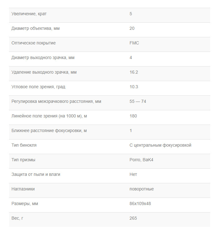 Вес бинокля: 245гр, 255гр с крышками и ремнём, 280гр в сумке.