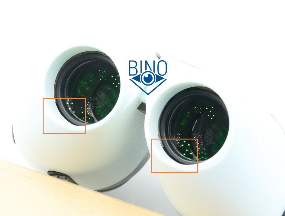 Вокруг пластиковой оправы объектива есть небольшой зазор до корпуса, он слегка прикрыт приклеенными секторами изнутри, но при фокусе за бесконечность частично видны щели внутрь бинокля, которые тоже тянут пыль и влагу на призмы. Из-за этого у А4 со временем образовался грибок на призмах, так как он самый старый из этой троицы.