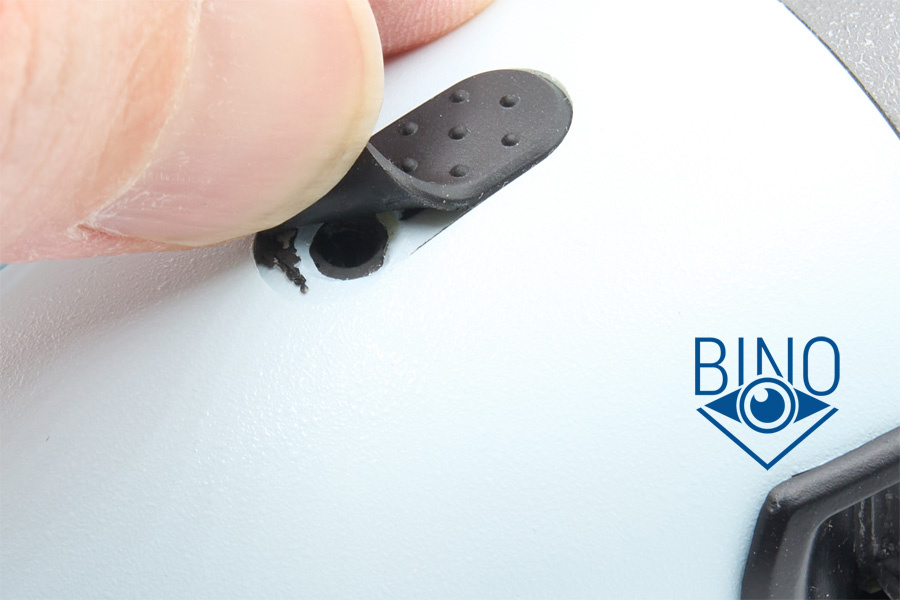 Низ колеса фокусера утоплен на 10мм внутрь корпуса, вокруг него есть щели в корпусе, через которые видны внутренности биноклей и куда может проникать пыль, влага.