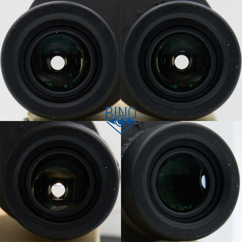 Я смотрю наземку с полностью выкрученными наглазниками наружу без очков, высоты наглазников чуть не хватает, хочется слегка оторвать бинокль от глазниц или смотреть исподлобья. В солнцезащитных очках видно всё поле зрения при сложенных наглазниках.