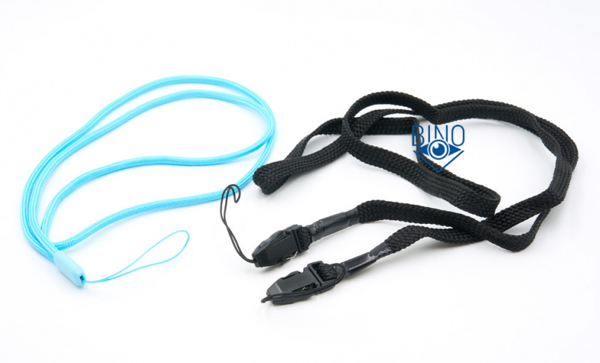 Нашейный ремешок у А4 и Сафари капроновый, чёрного цвета, шириной 8мм, крепится к биноклю на клипсах через маленькие верёвочки. У Прима это цельный шнурок, толщиной около 4мм, для крепления с одной стороны бинокля, хотя проушины также с двух сторон корпуса.