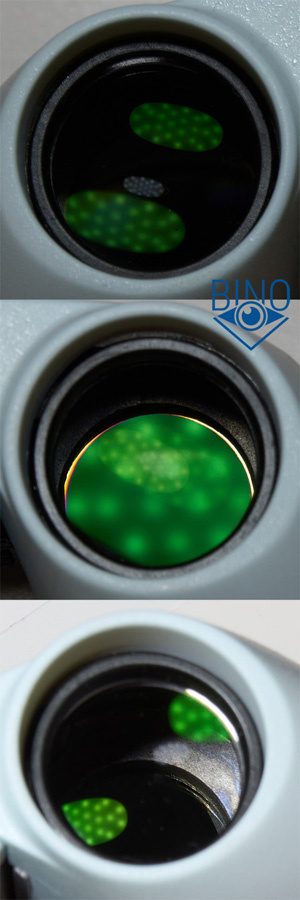 На фото выше (слева) верхнее фото: блики от просветлений объектива; среднее фото: блик от просветления призмы, нижнее фото: вид на призменную диафрагму. Она не закрывает край призмы, на среднем фото хорошо видна яркая полоска внутри.
