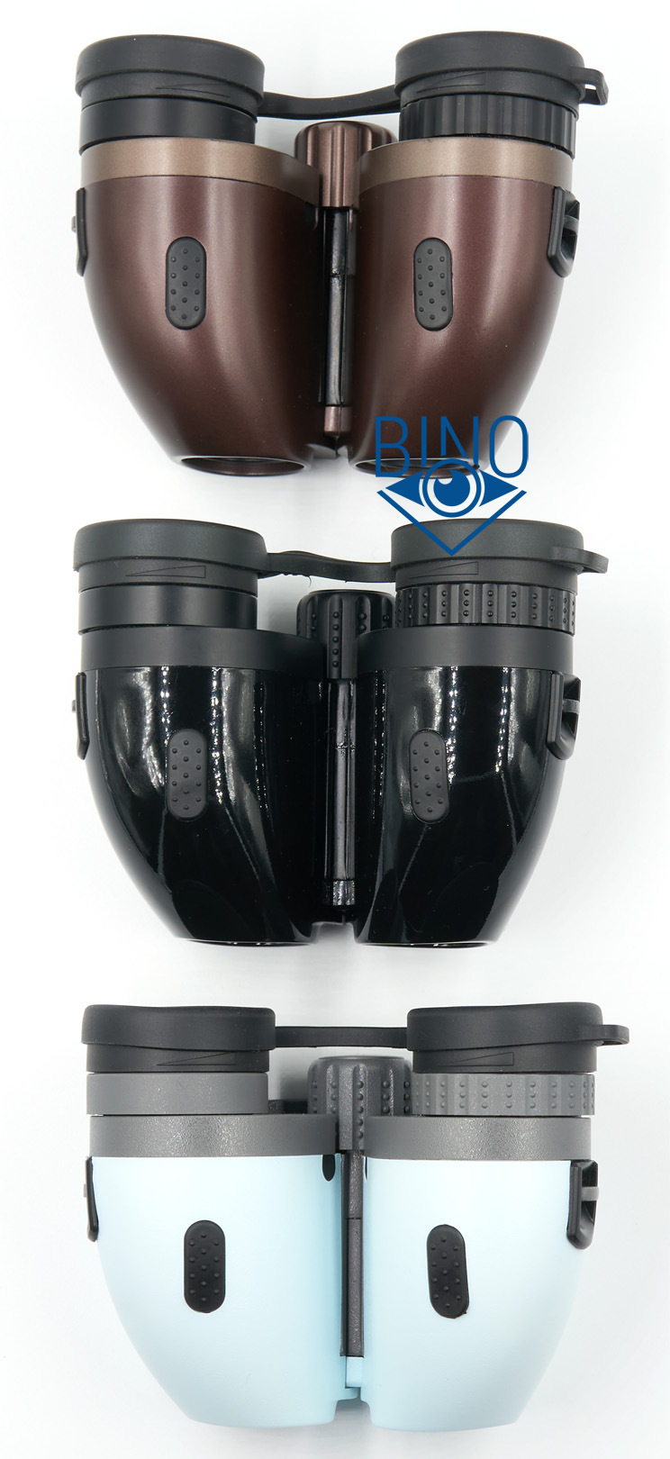 Корпуса идентичны вплоть до расположения резиновых уплотнителей. Цветовая раскраска у биноклей тоже совпадает, только у Прима пластиковые кольца под окулярами нелогично окрашены в серый цвет под вставку в центре, тогда как у двух других они чёрные под наглазники.