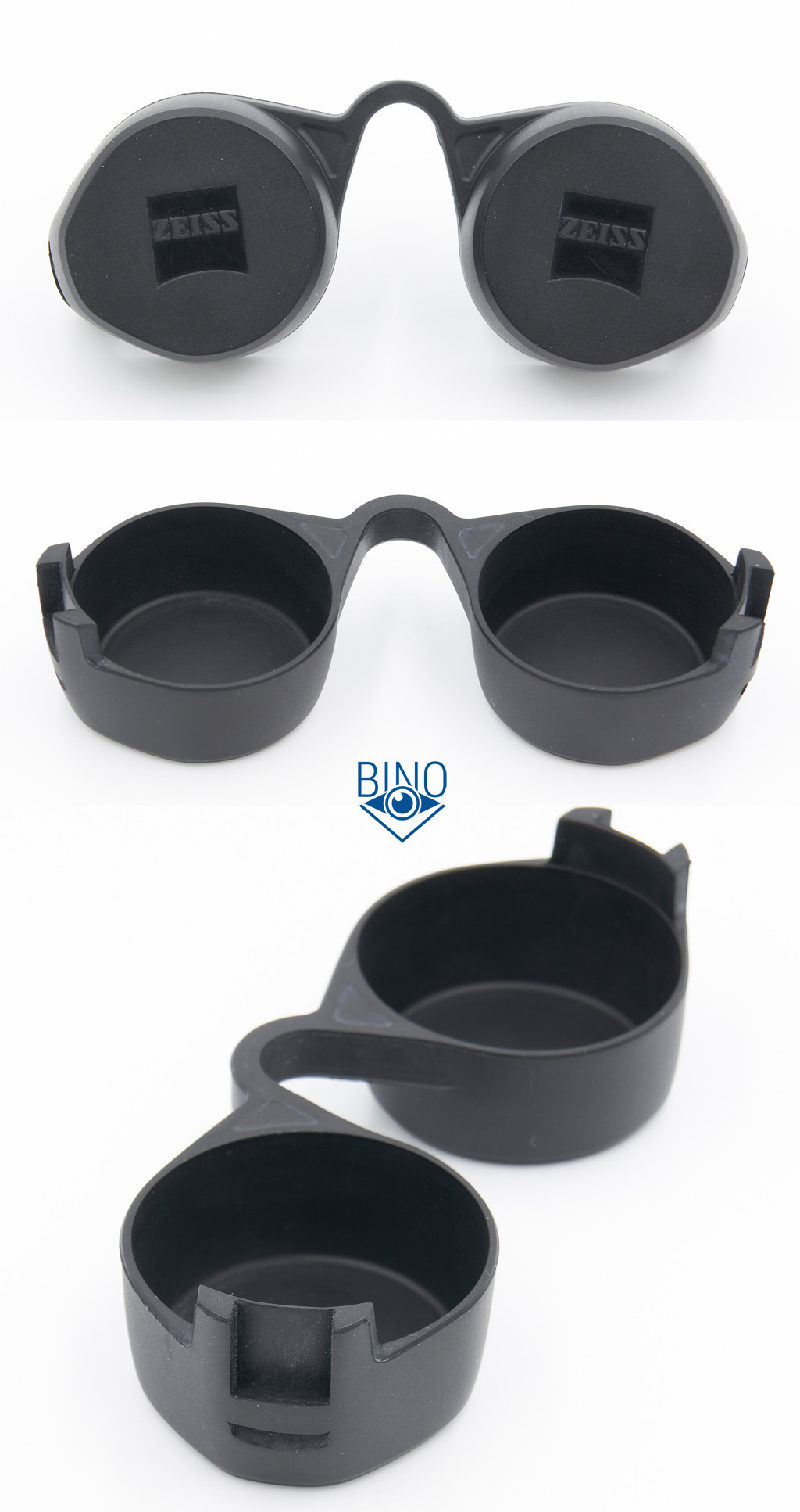 У меня нет штатных крышек на объективы, они тоже совмещённые, внутреннего зацепления. По бокам есть проушины (и верёвочки в комплекте) для крепления крышки к проушинам бинокля для нашейного ремешка.