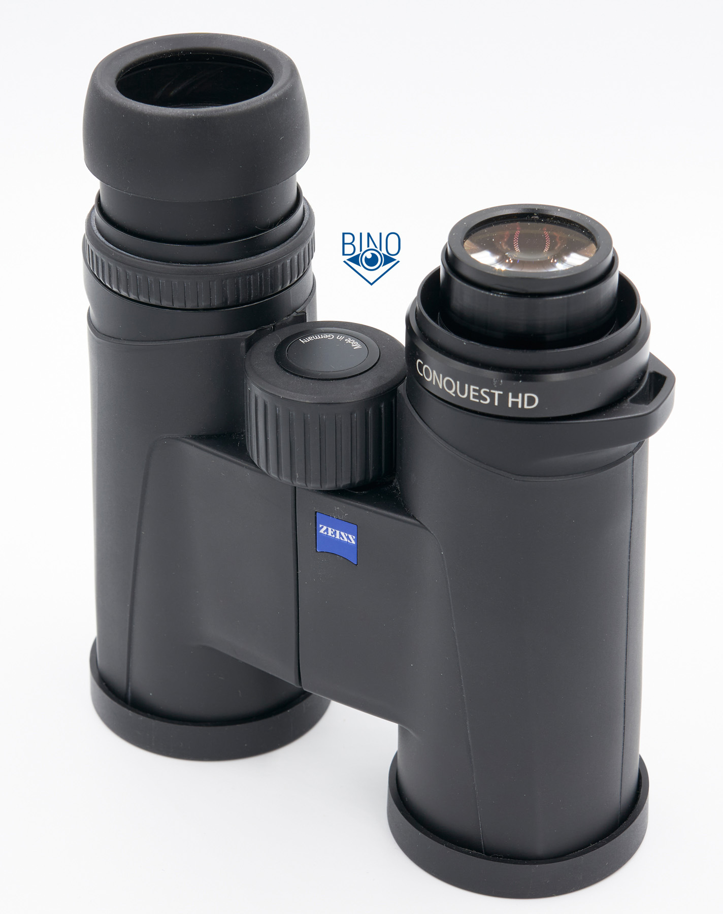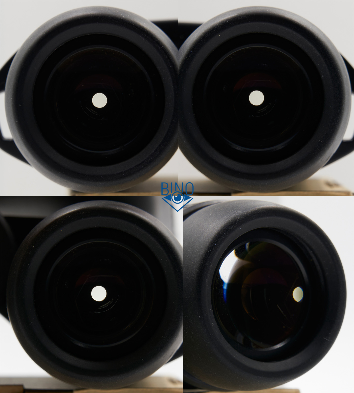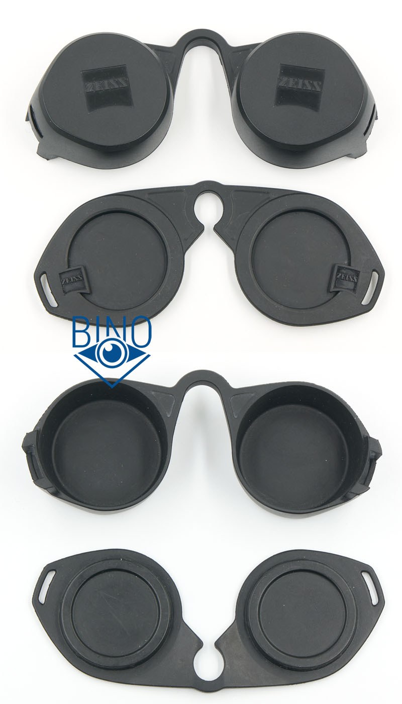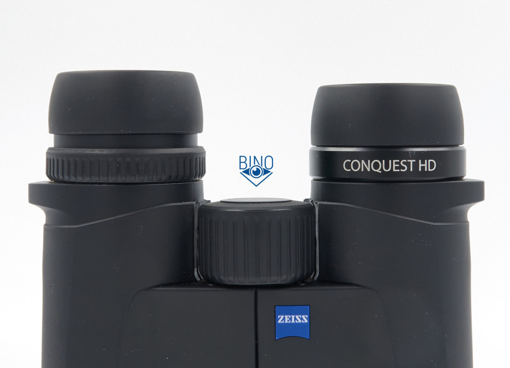 У Zeiss есть замена - высокие наглазники, на фото выше они слева, а справа штатные короткие наглазники над надписью CONQUEST HD. Итак, высокие наглазники спроектированы для использования без очков: в них вполне удобно (мне) смотреть без очков на втором шаге наглазников наружу (исподлобья) или на последнем третьем шаге, полностью прижав бинокль вокруг глаз, но в них в сложенном состоянии доступен меньший вынос выходного зрачка (8мм от края), чем в штатные. В результате при сложенных высоких наглазниках в очках видно не больше 50-60% поля зрения и смотреть не очень удобно.