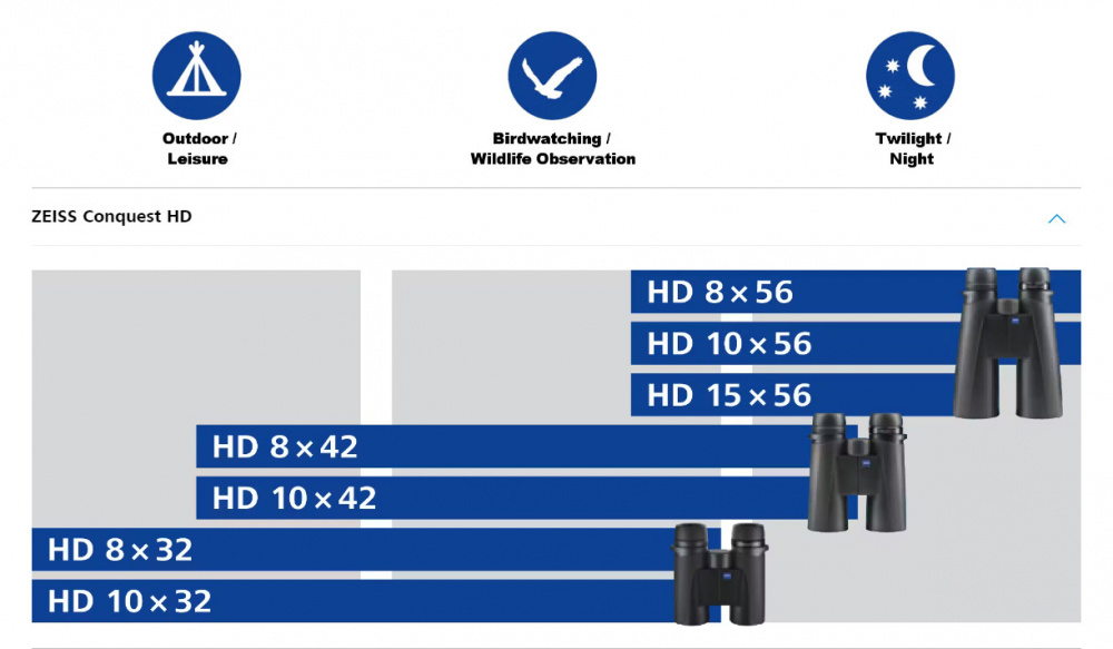 Пришло время обновить мой старый обзор, в прошлом году было 10 лет с начала производства биноклей Conquest HD, вполне юбилей. Обновление HD было заявлено в начале 2012 года, в течение года появились все модели из линейки. На официальном сайте есть картинка с позиционированием разных моделей:
