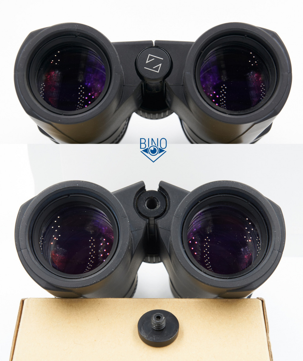 Идеальная реализация крышки-заглушки штативного отверстия - снаружи вровень с обрезинкой бинокля. Остаётся больше места между тубусами для пальцев, заглушка не врезается в палец, на котором бинокль лежит вертикально, когда держишь его в руках.