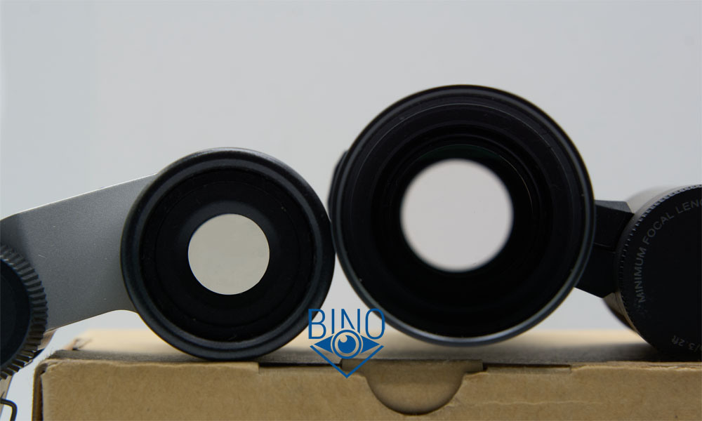 Просвет у стопорных колец объектива около 11,8мм, действующая апертура по тесту фонариком получилась тоже около 11,8мм. Наружная линза объектива выпуклая, утоплена от края тубуса внутрь на 6мм по центру и на 6,5мм по краю. На концы тубусов накручены пластиковые кольца чёрного цвета, под ними расположены стопорные кольца-диафрагмы. Нарезки светозащиты внутри тубусов нет, оправа линз является диафрагмой. У призмы есть только внутренняя диафрагма, окрашена. Внутренности тубусов матированы слабо, торцы наружной линзы объектива зачернены и расположены шире оптического тракта.