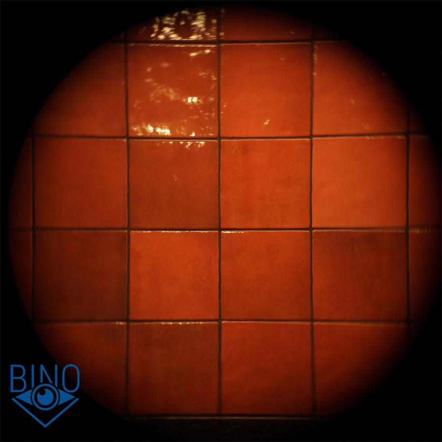 Выходной зрачок (далее ВЗ) диаметром около 3,5мм, круглый. С внутренней стороны в каждом канале есть ложный выходной зрачок. В остальном затенение вокруг ВЗ нормальное, но есть бликование в районе призм (фото 4). Кратность бинокля по отношению апертуры к диаметру выходного зрачка получилась 11,8/3,5 = 3,4х.