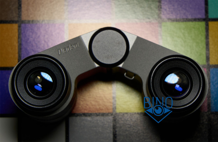 Хроматическая Аберрация (ХА) на оси у Diadem слабая, почти не фиксируется в центральной области поля зрения, к краю слегка увеличивается. По краю ХА видна на внешней пятой части поля зрения, каёмки хроматизма (увеличения) узкие и не насыщенные, поэтому почти не заметны. Цвет у каёмок ХА не совсем классический жёлто-синий, они скорее жёлто-красные и сине-фиолетовые на всём поле зрения. Из-за простых (однослойных) просветлений похоже зарезана нижняя (фиолетовая) область спектра пропускания, из-за чего ХА малозаметна по всему полю. Только при смещении глаза с оси окуляра каёмки ХА слегка проступают по центру.