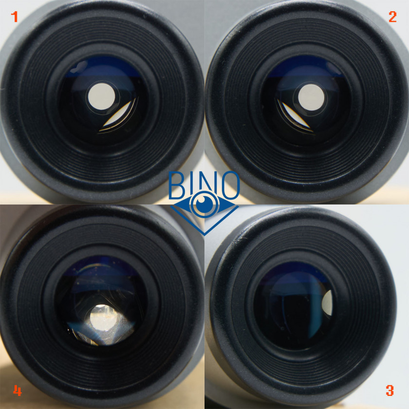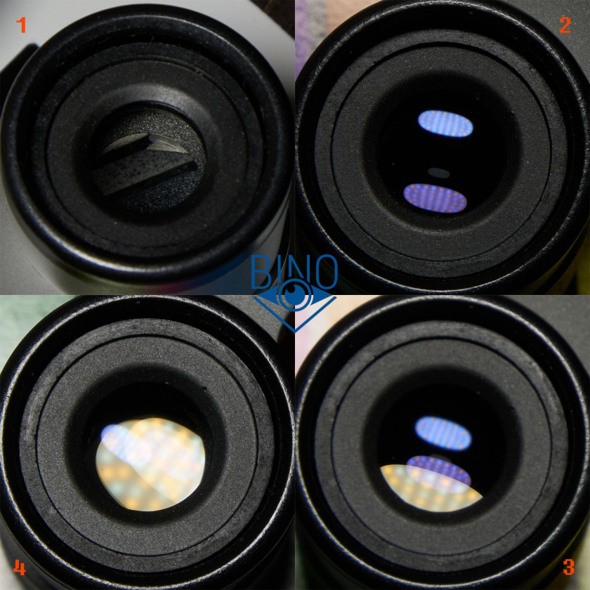 На фото выше (слева): 1 - выходной зрачок левого канала, 2 - вз правого канала, 3 - вз на краю (оценка виньетирования), 4 - имитация наблюдений в сторону Солнца (подсветил объектив сверху фонариком смартфона).