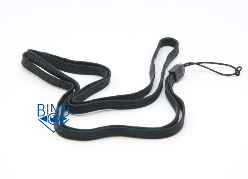 Нашейный ремешок, или вернее шнурок, синтетический, шириной 6мм и толщиной 1мм. Он подходит для разгрузки шеи от веса этого очень лёгкого бинокля (150гр). Длина шнурка 49см, бинокль на нём болтается ниже живота. В комплекте он скорее для подстраховки, чем для ношения бинокля на шее, чтобы не уронить бинокль вниз с балкона или верхнего яруса в театре шнурок можно обмотать вокруг руки.