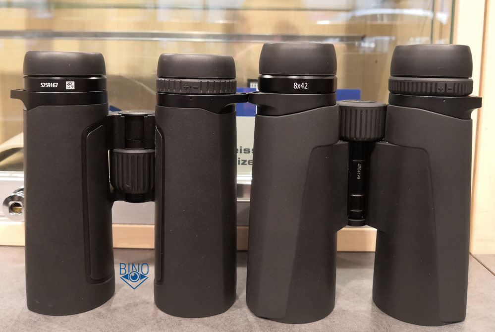 Привожу также пару фото для сравнения с Kahles Helia S 8x42 (Swarovski SLC), видно, что Helia более громоздкий и тяжёлый бинокль (815гр). Правда обрезинка толще и равномерно покрывает весь корпус.