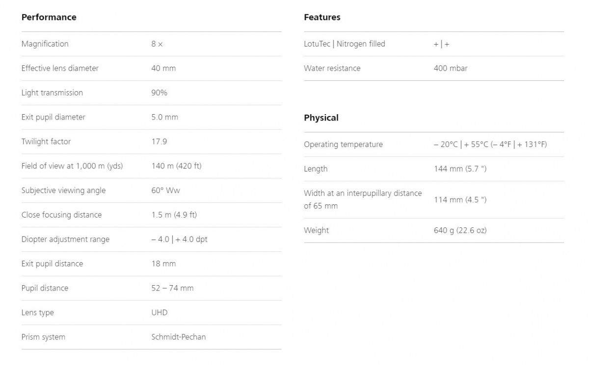 Да, забыл написать про самое главное - вес SFL 8x40 всего 640 грамм! В руках бинокль ощущается легче, чем ожидаешь по его виду и формату. Обычный вес формата х42 750-800гр, как у CHD. А тут при сравнении в руках явно полегче. Как у формата х32.
