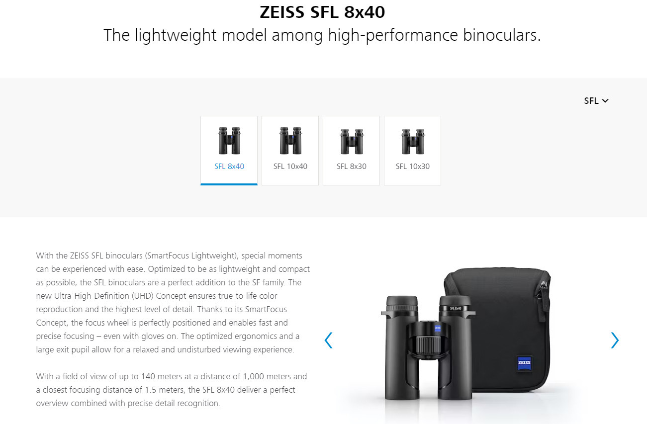 В продолжение предыдущего обзора на Conquest HD хочется остановиться подробнее на новой линейке SFL. Обновление HD для Conquest было заявлено в начале 2012 года, то есть в прошлом году было ровно 10 лет производства этой линейки биноклей, вполне юбилей. В начале 2022 года Zeiss анонсировал новую линейку биноклей SFL (SmartFocus Lightweight), потом пошли предзаказы, и в свободной продаже бинокли появились к середине-концу лета.