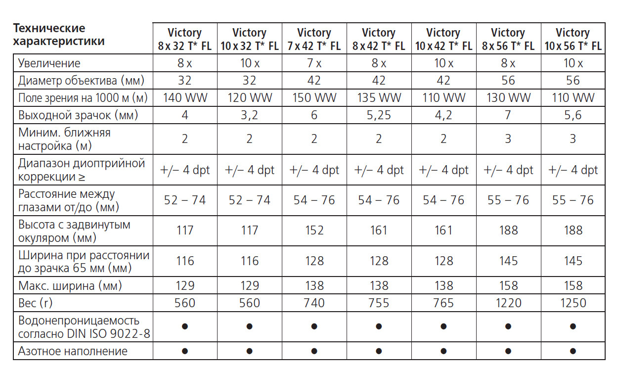 Получается, этот бинокль не апохромат, как можно было бы предположить из названия.. Zeiss называет этот тип объектива FL, тогда как у Victory SF - Ultra-FL. Именно эти бинокли являются апохроматами, как и верхние линейки биноклей у Swarovski. Когда-то давно я считал, что это из-за типа объектива-дублета на флюорите, но, во-первых, как мы уже посмотрели выше, у Victory FL применён тип объектива триплет, а во-вторых, используется ED-стекло, а не флюорит. Объектив-дублет с более эффективным и, скорее всего, дорогим ED-стеклом используется в следующей линейке Victory SF.